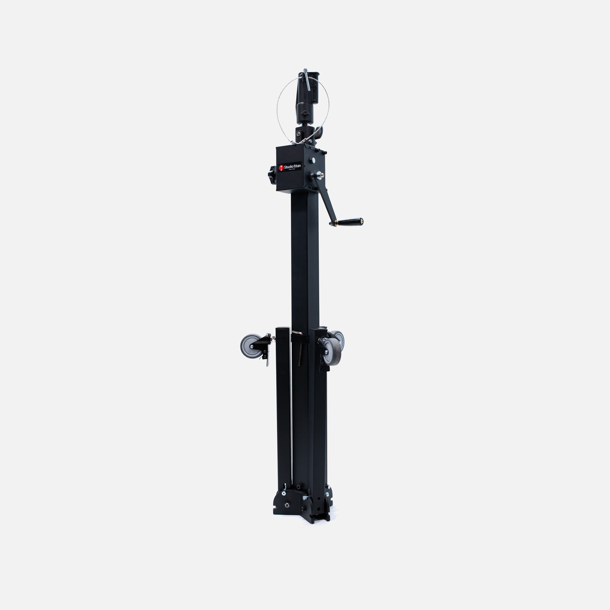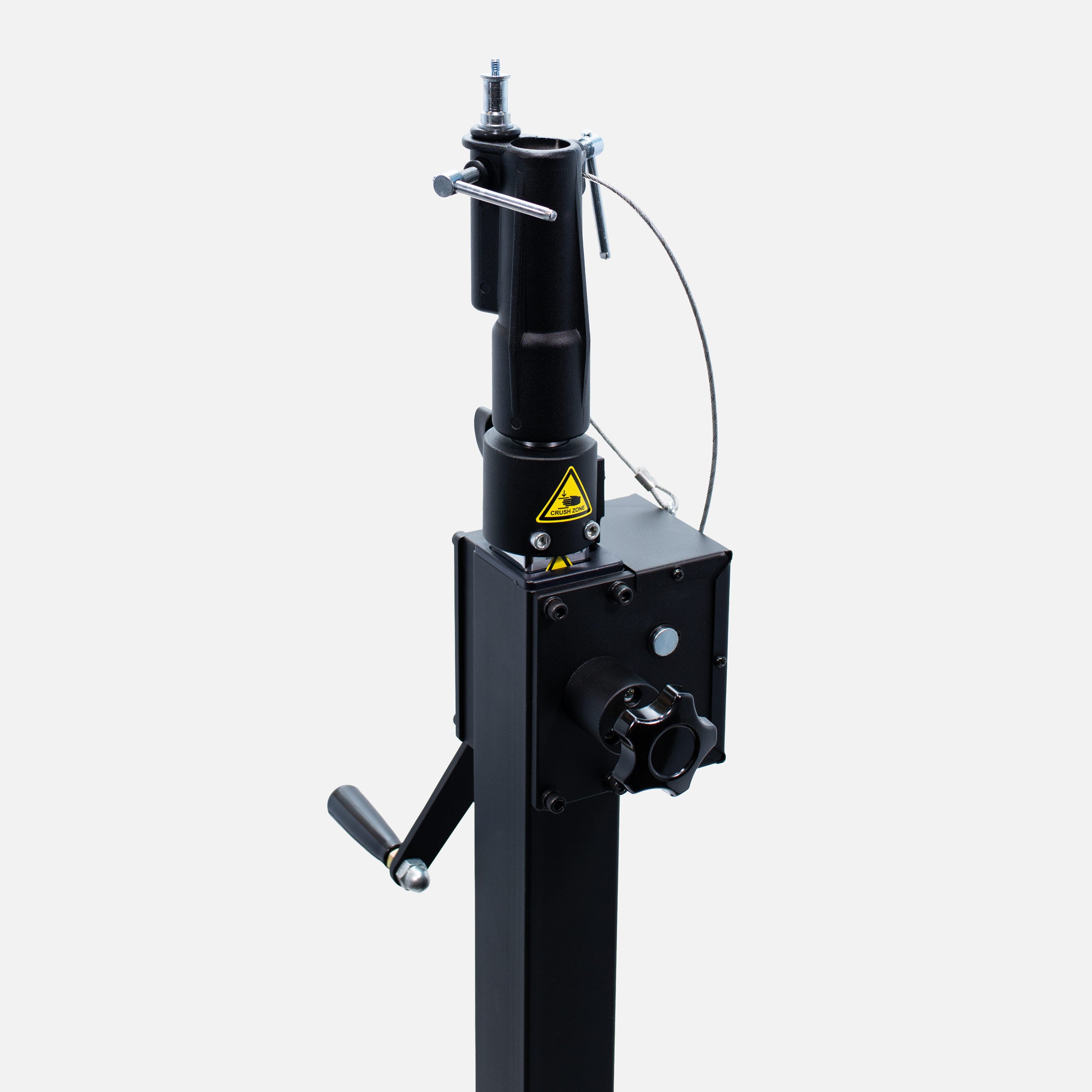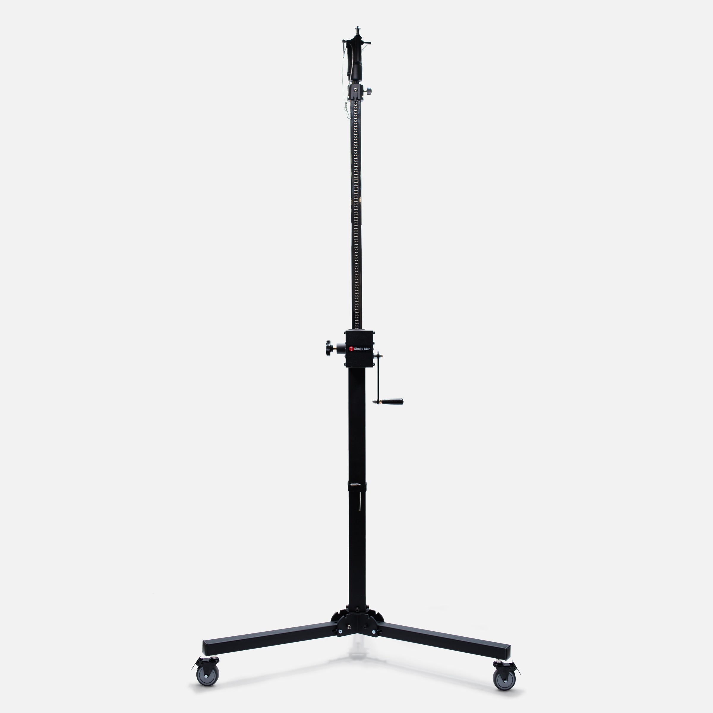 The STA-06-200 Rack & Pinion Geared Crank-up Stand with rolling base is a genuine "rack and pinion gear" commercial studio-grade, fail-safe solution. The STA-06-200 provides a well engineered, budget-friendly product that is accessible to all sizes of studios.