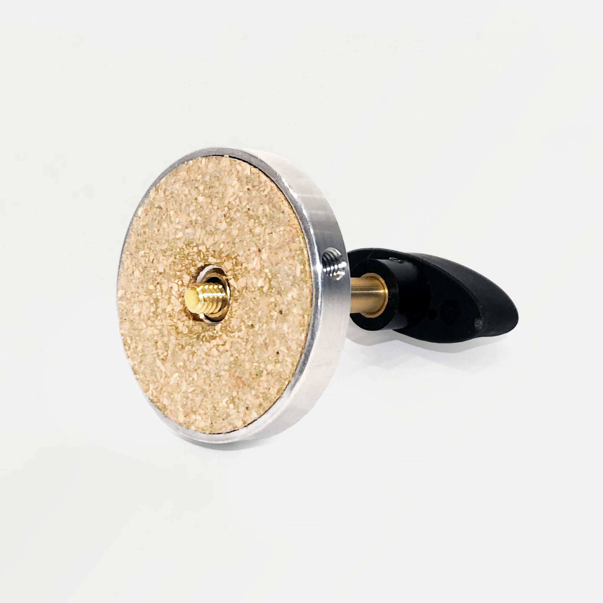 Designed for use with the side kick series pistol grip. Provides a rock solid mounting surface for a Camera with a standard 1/4" thread. The mounting plate is provided with a cork mounting surface that holds the Camera in place. A flat is machined on one side of the attachment stud to prevent rotation. When the pistol grip locking knob is tightened onto the flat it secures the attachment stud in place.
