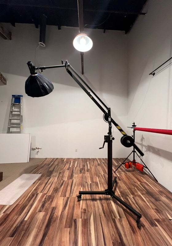 The short length of the sliding counterweight track makes the STA-05-031 LARGE Double Beam Light Boom a perfect choice for space limited studios.