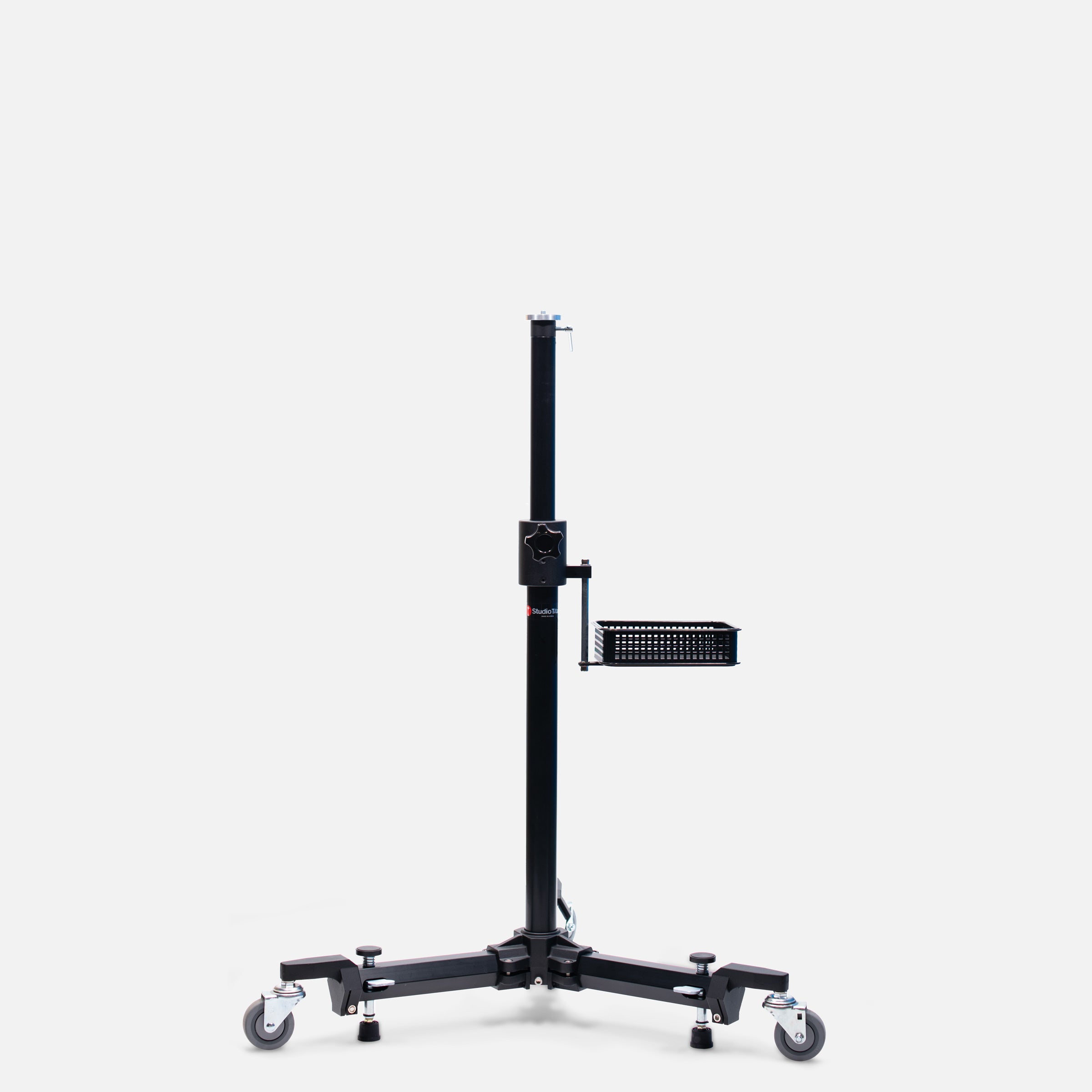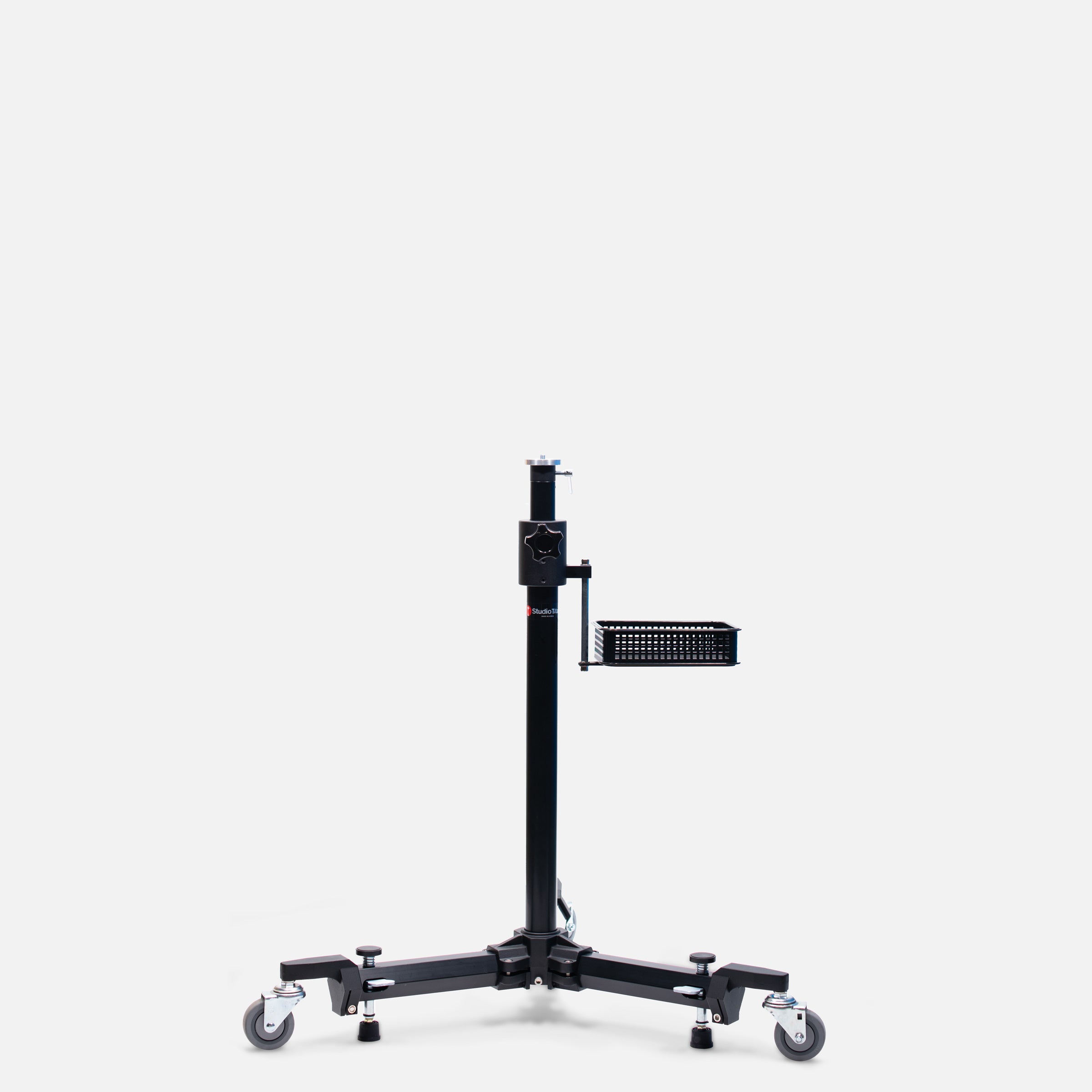 The STA-01-450 is designed for Digital SLR Photography.  Its primary applications  include: Private Medical Surgery Practices, compact imaging rooms and portrait studios. The STA-01-450 is designed for shooting headshots, full body and seated portrait. The vertical column [up/down] positioning is adjusted using only one knob.  Located inside, at the bottom of the vertical column is a rubber bumper that prevents a hard stop when the vertical column is in its lowest position. The foot-operated brake plungers can be locked and unlocked very quickly using only one foot.  This provides very rapid repositioning of the mono stand and quick securing of the base. A feature not found on other brands is the basket, which provides convenient safe storage for your light meter, memory cards and mobile phone.  A Camera Head Mount Plate with brass anti-rotation securing screws is supplied with the stand