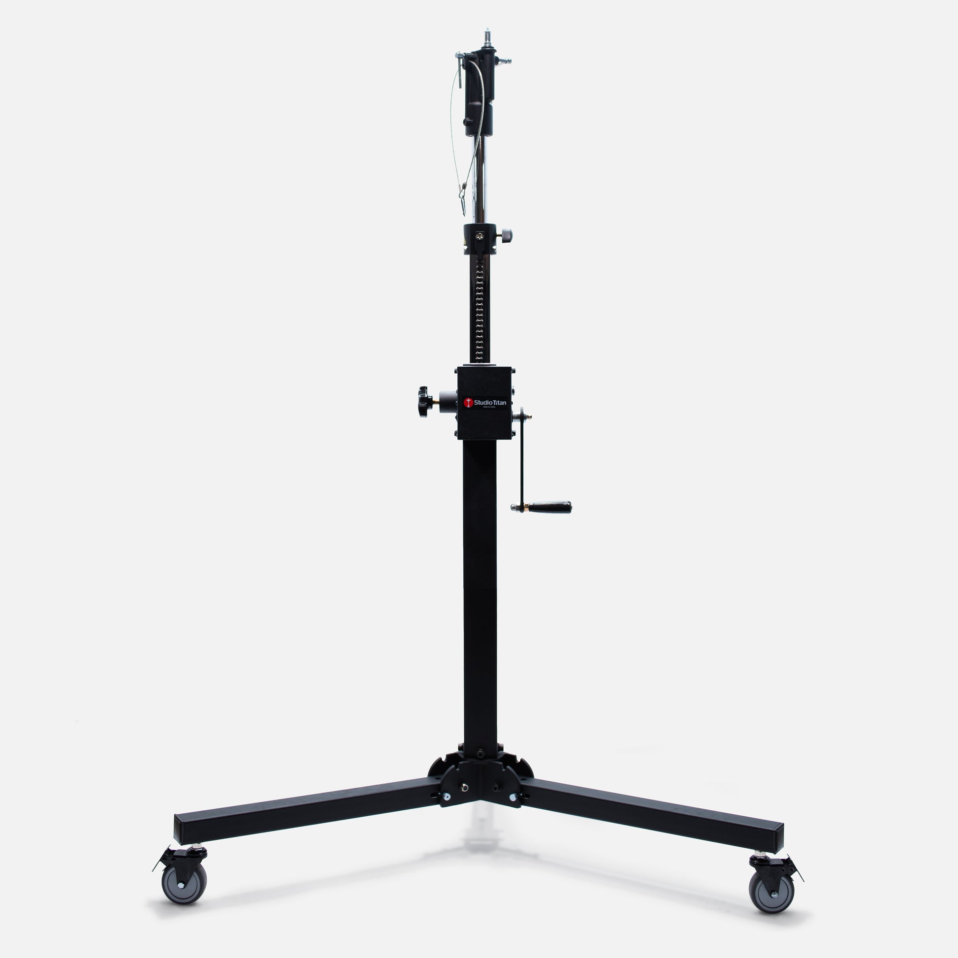 The STA-06-200-1000 Lowboy Rack & Pinion Geared Crank-up Stand with rolling base is a genuine "rack and pinion gear" commercial studio-grade, fail-safe solution. The STA-06-200-1000 Lowboy provides a well engineered, budget-friendly product that is accessible to all sizes of studios. This product was designed in response to clients that shoot seated subjects with Para (parabolic) modifiers and large umbrellas.