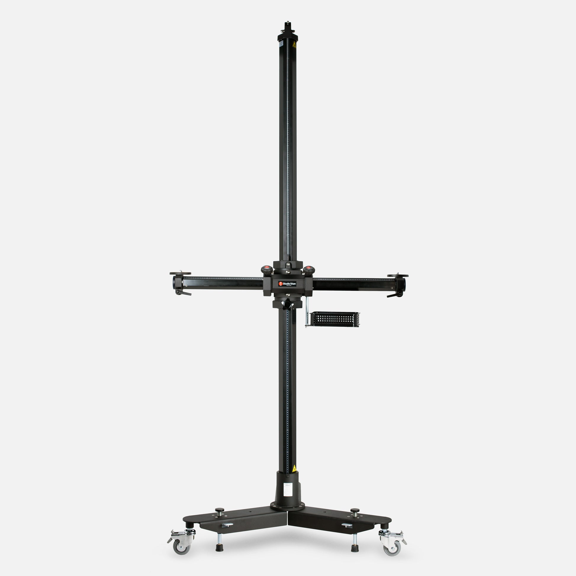 The STA 01-350 MK2 [updated MK2 version] is designed for commercial photography and optical measurement systems. It features a center column height reaching 240cm/94.4 inches and a horizontal arm width of 100cm /39.3 inches. The base is heavily weighted for added stability. The STA 01-350 MK2 provides additional reinforcement of the Horizontal Arm/Bar by a newly designed heavy-duty interface plate. The plate provides two additional bolts strategically located, one on each side of the vertical carriage, for a total of 4 bolts.