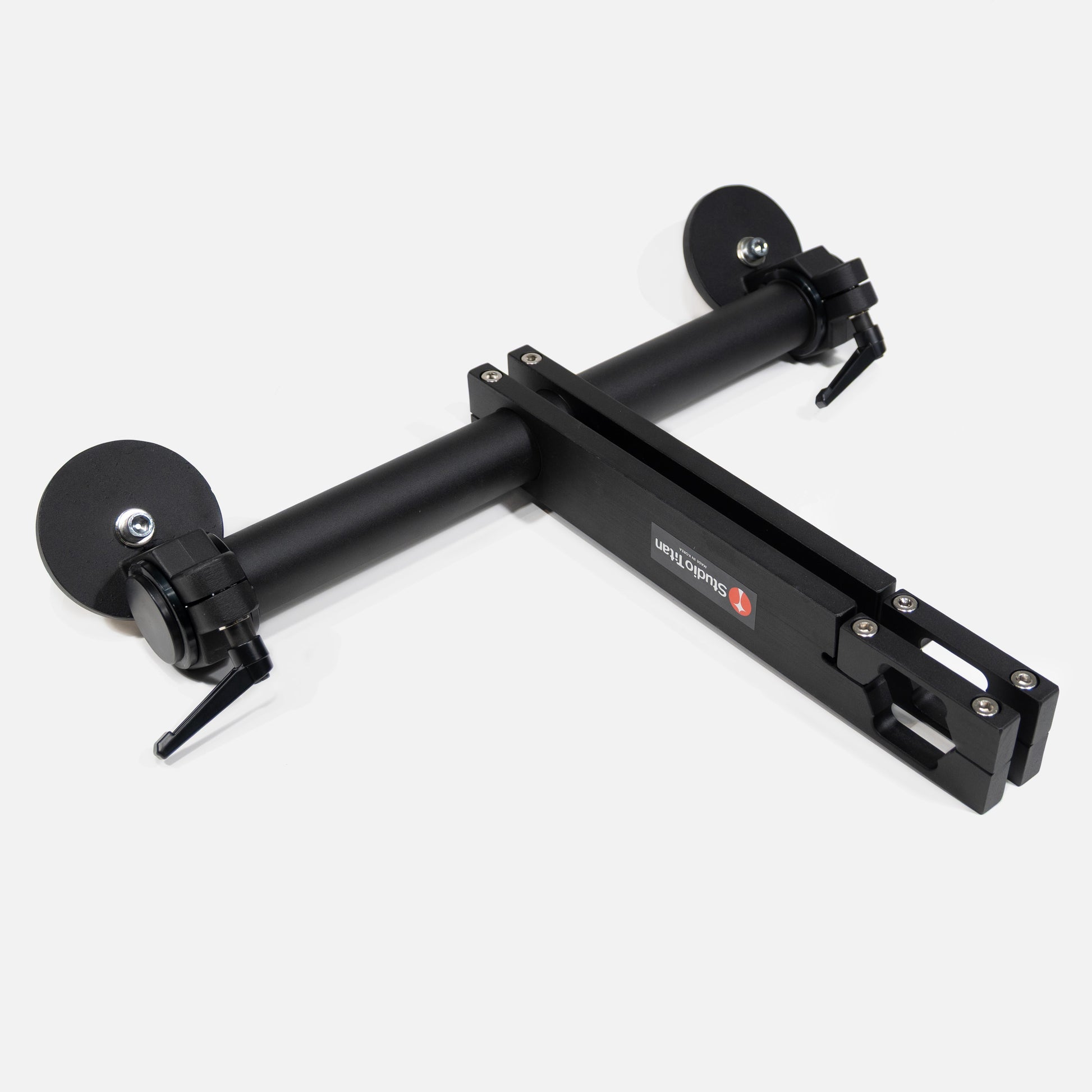 The STA-01-398DAT is a clamp-on extension arm with two clamp plates and two adjustable camera head mounts. This option provides a third and a fourth camera head mount plate. Two clamp plates increases rigidity of the extension arms.