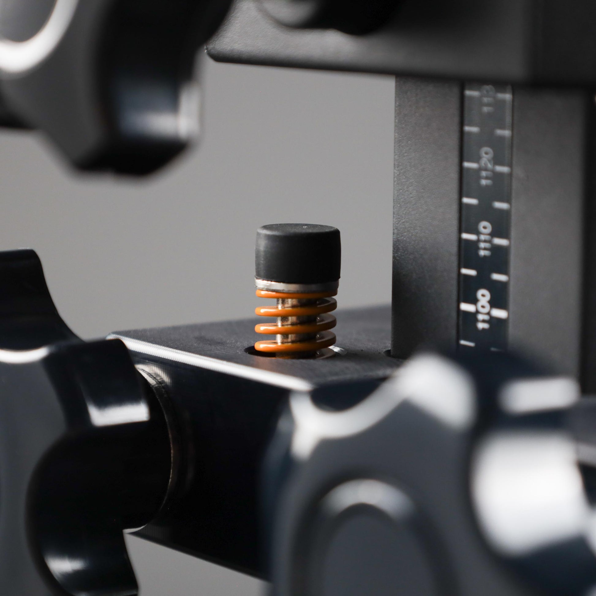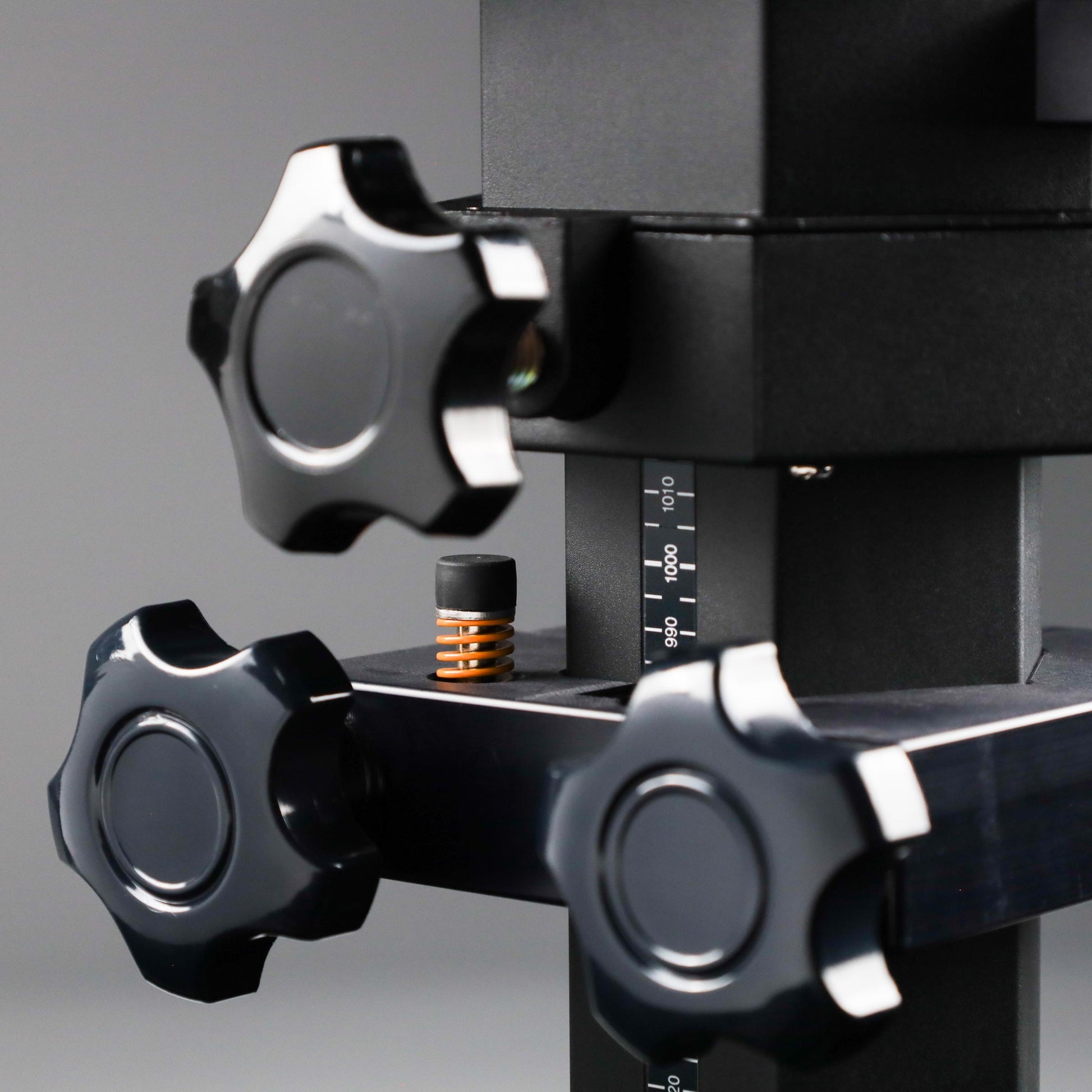 Installation onto the vertical column only requires that the clamp knobs are loosened until the travel stop opens. Place the travel stop around the vertical column and tighten the clamp knobs.